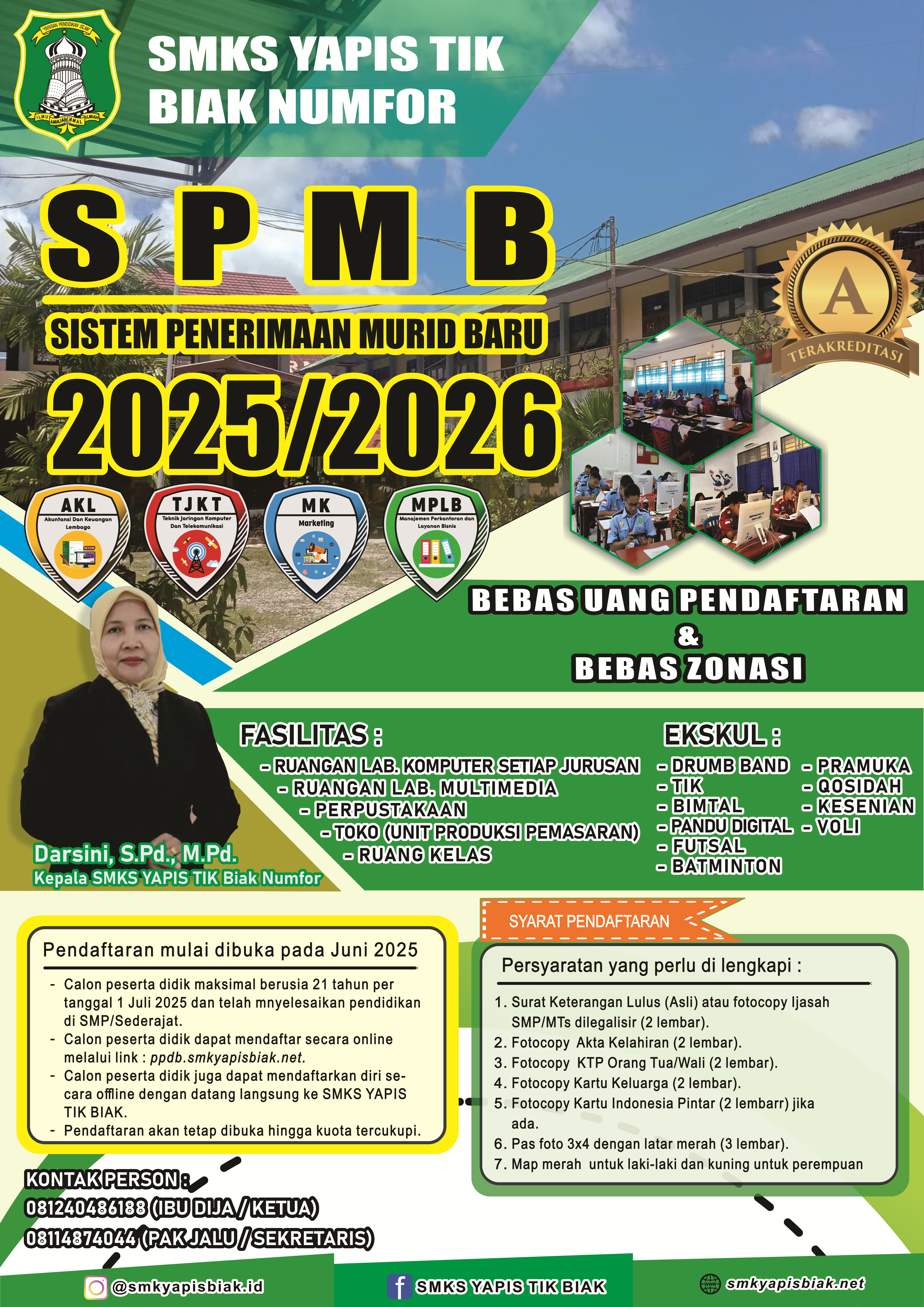 SMKS YAPIS TIK BIAK NUMFOR menyediakan SPMB secara online diharapkan proses SPMB dapat berjalan cepat dan bisa dilakukan dimanapun dan kapanpun selama sesi SPMB Online dibuka. Proses pendaftaran calon siswa baru tidak menggunakan formulir konvensional hanya dengan mengakses website SPMB Online SMKS YAPIS TIK BIAK NUMFOR.
